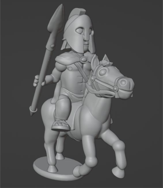 A 28mm foot to eye 3d printed miniature and horse made with a tough but not brittle resin, supplied as one piece. Please note these are fictional Spartans made for my own imagination land campaign.