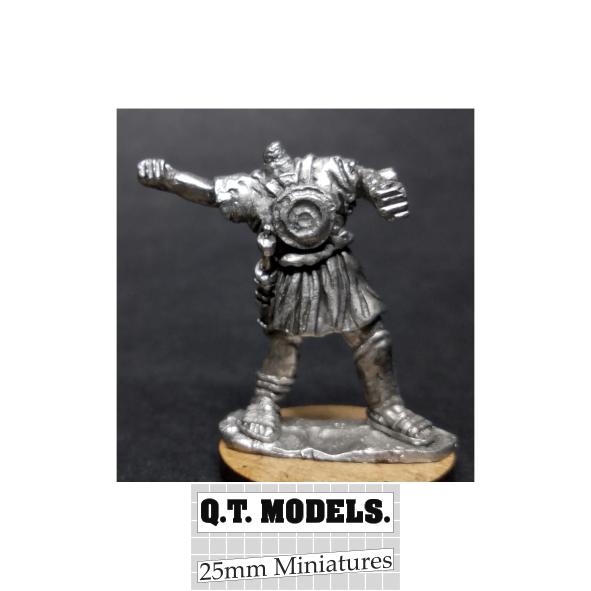 A white metal 25mm miniature supplied with open right hand and pegged left arm for shield. Recommended heads-R05/R10. Recommended shield-R61. Recommended weapon-R32.
