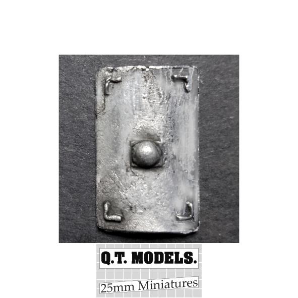 A pack of ten white metal shields suitable for 25mm miniatures.