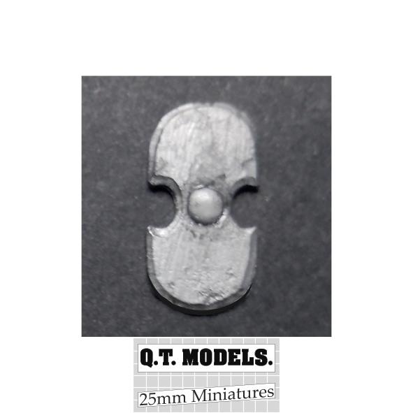 A pack of ten white metal shields suitable for 25mm miniatures.