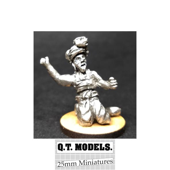 A white metal 25mm miniature supplied with open right hand for wire javelin-not supplied, left arm has peg for shield.