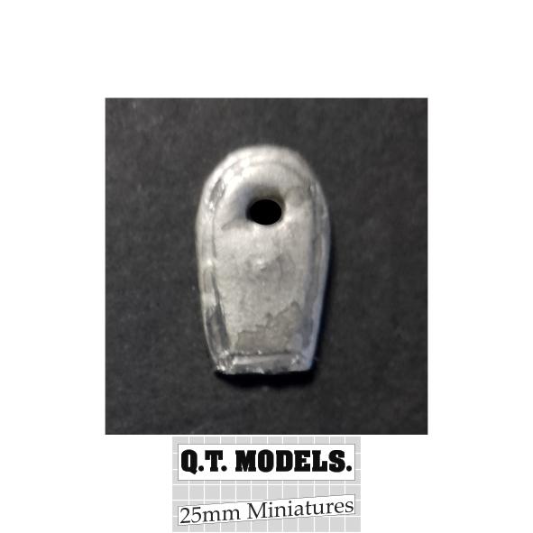 A pack of ten white metal shields suitable for 25mm miniatures.